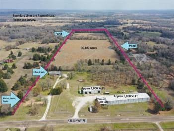 #42 Fairfield-+/-39.809 Acres, 3/2 Mobile, 10,400 sq.ft Shop (8,800 Under Roof & 1,600 sq.ft. Office), 4,000 sq.ft. Shop w/Private Office & 1/2 Bath, Commercial Entrance Separate from Residential Entrance, 423 State HWY 75. $1,400,000